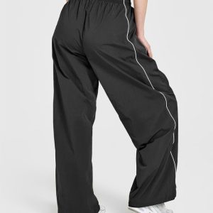 Oversized Piped Woven Straight Leg Track Bottoms Deep Umber Brown