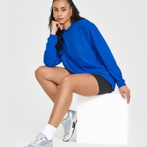 Classic Oversized Lightweight Long Sleeve Top Cobalt Blue