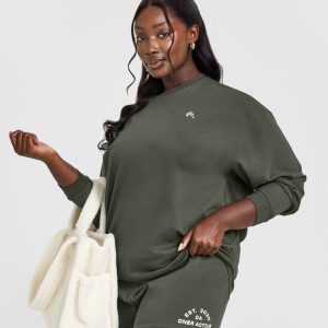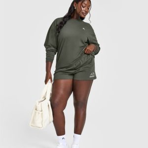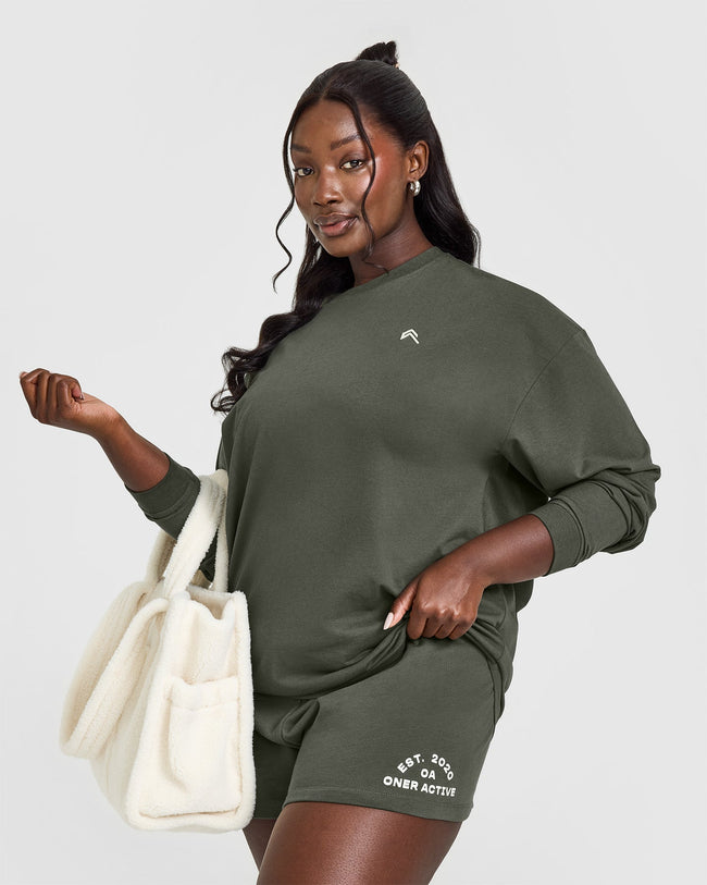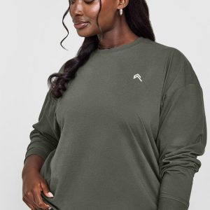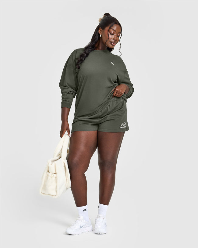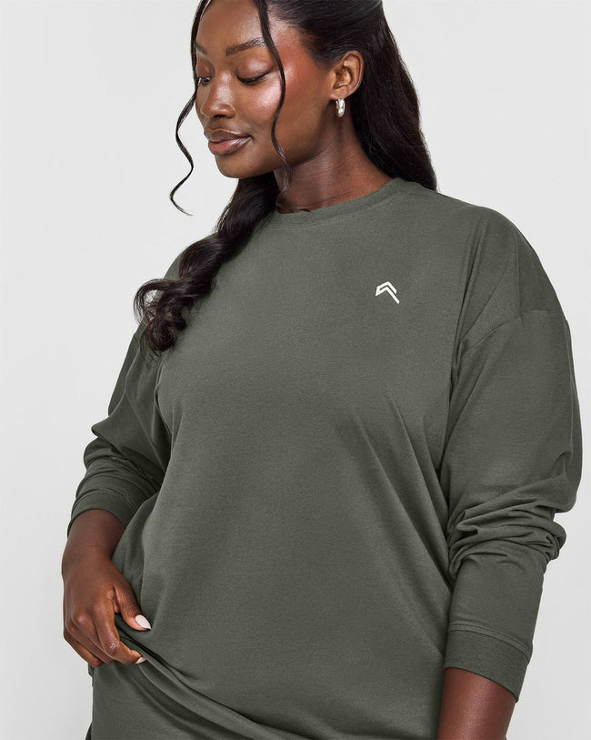 Classic Oversized Lightweight Long Sleeve Top Dark Khaki