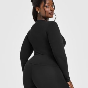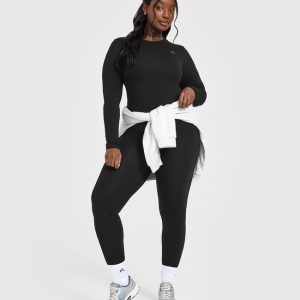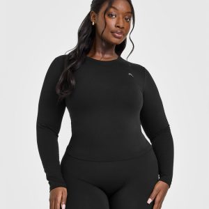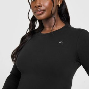 Cotton Icon Long Sleeve Top Black