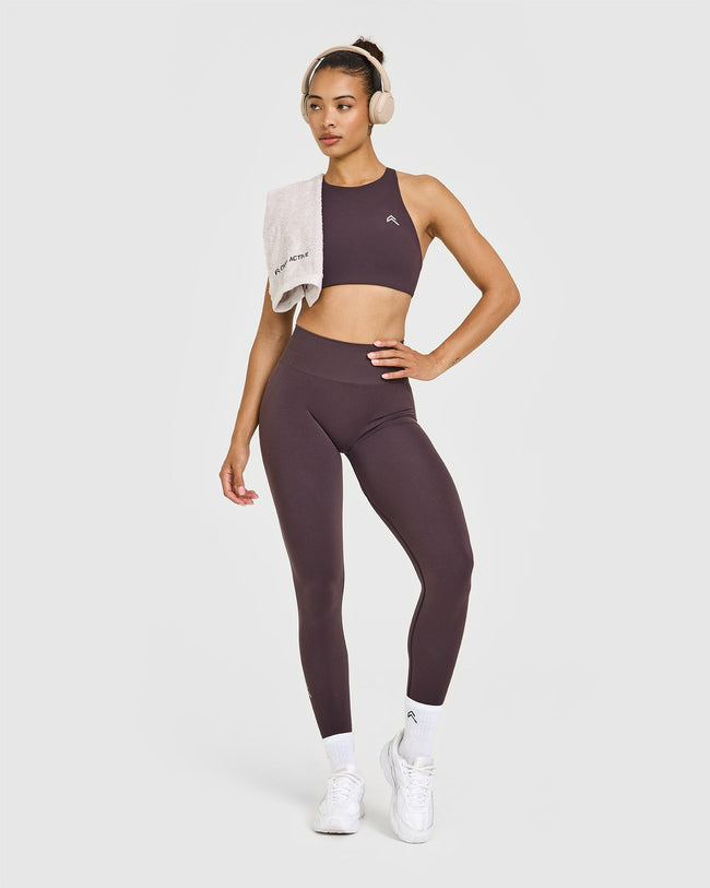 EasyLift™ High Neck Sports Bra Dark Umber Brown