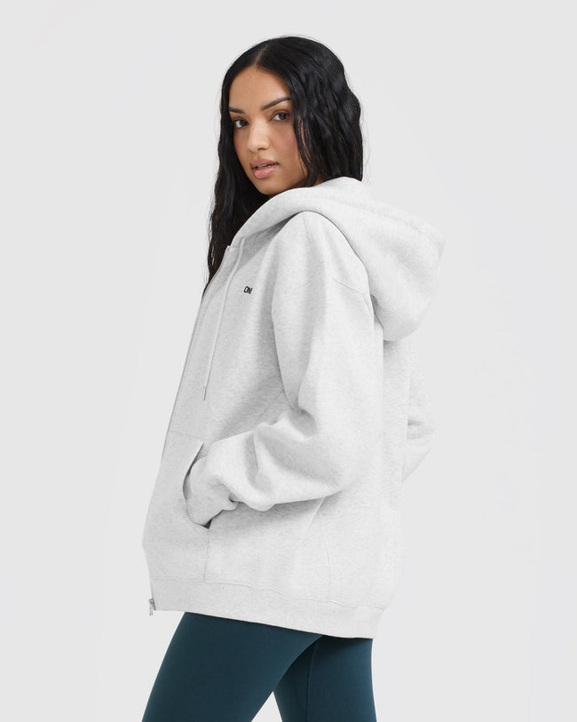 Foundations Zip Through Hoodie Light Grey Marl