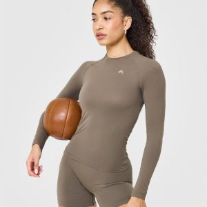 Go To Seamless Fitted Long Sleeve Top Moss Brown