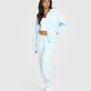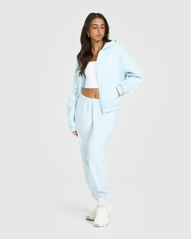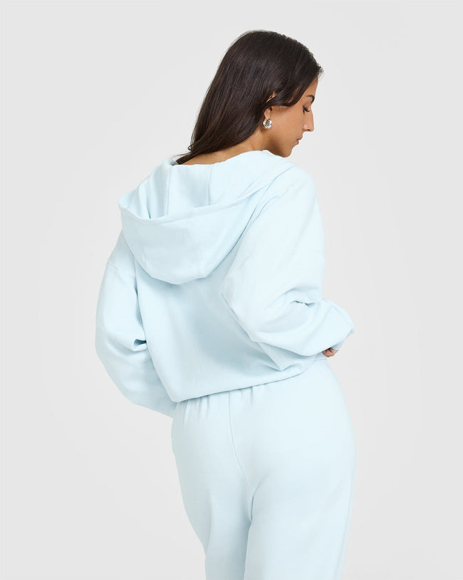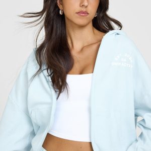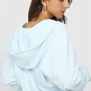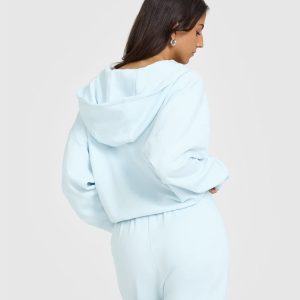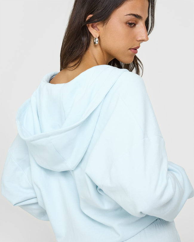 Lightweight Zip Through Hoodie with Graphic Cloud Blue