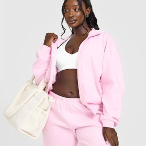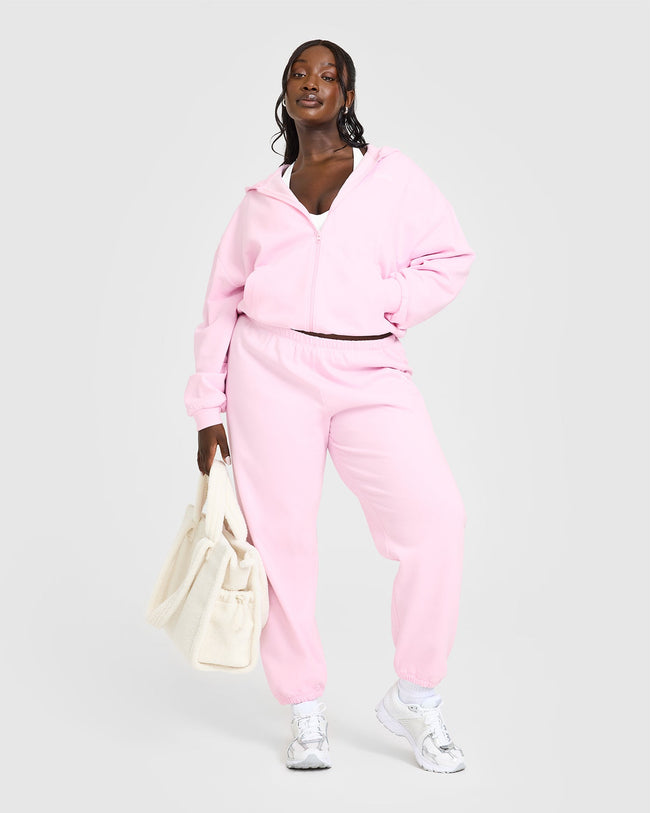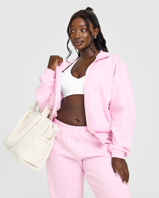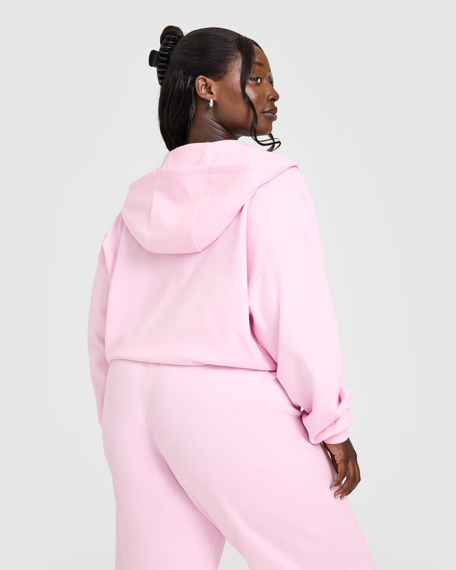 Lightweight Zip Through Hoodie With Oner Logo Washed Chalk Pink