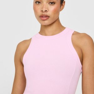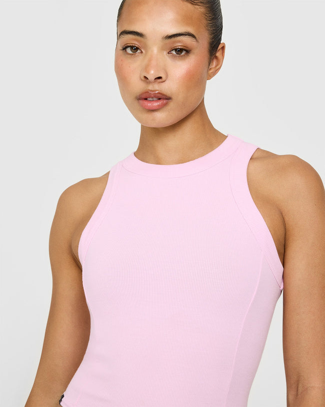 Mellow™ Rib High Neck Mid Tank Top Chalk Pink