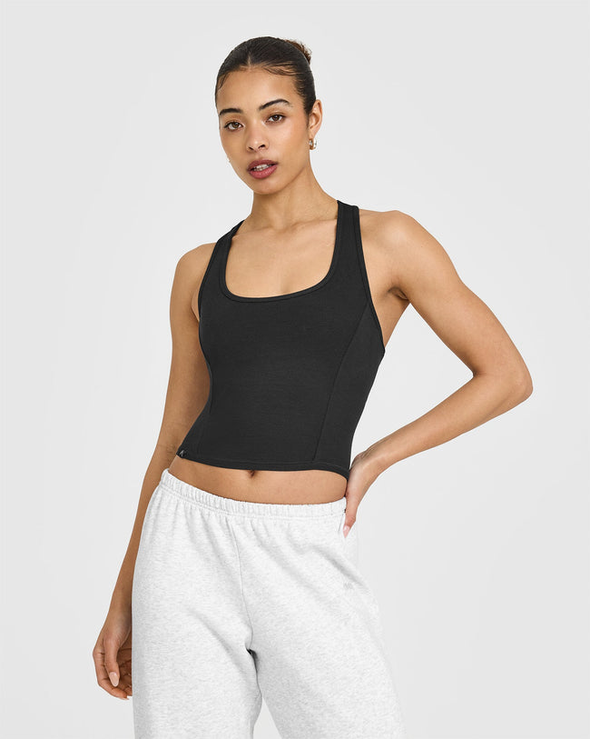 Mellow™ Rib Square Neck Mid Vest with Built in Bra Shelf Soft Black