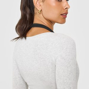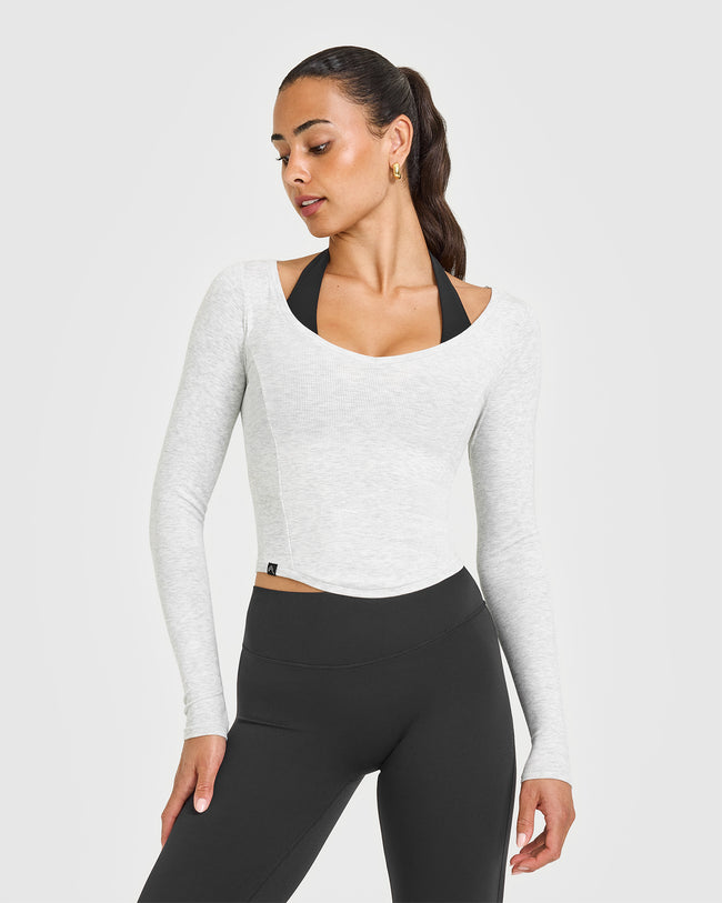 Mellow™ Rib V Neck Mid Long Sleeve Top Light Grey Marl