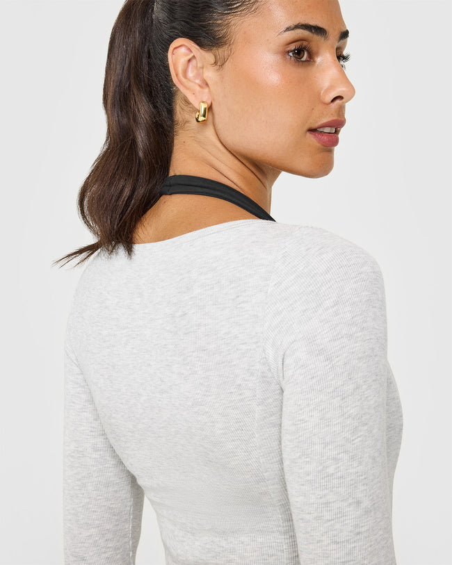 Mellow™ Rib V Neck Mid Long Sleeve Top Light Grey Marl