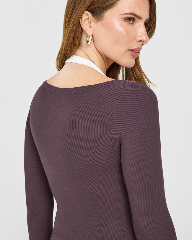 Mellow™ Rib V Neck Mid Long Sleeve Top Umber Brown