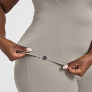 Mellow™ Rib Square Neck Mid Vest with Built in Bra Shelf Cloud Grey