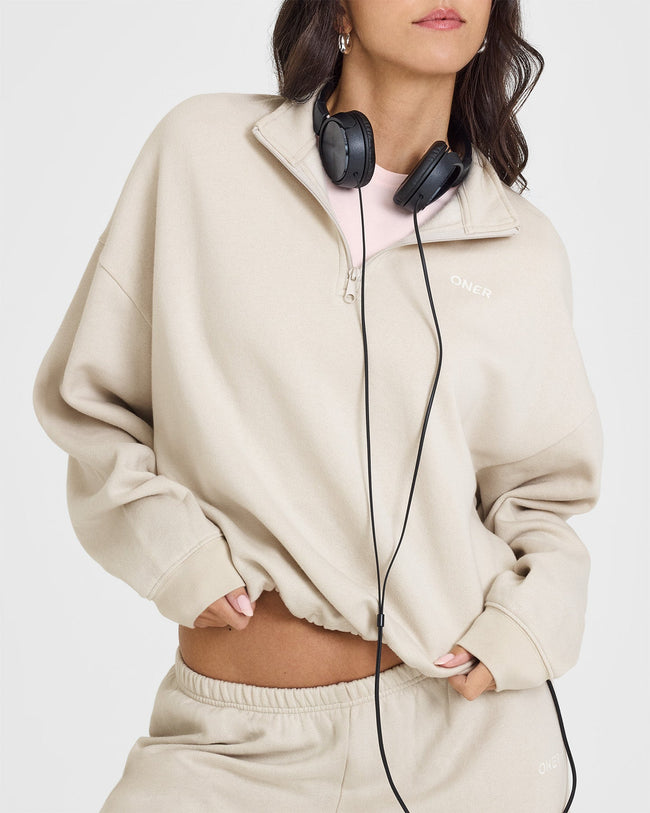 Mid Weight 1/4 Zip Sweatshirt Sand