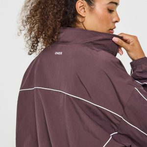 Oversized Piped Woven Track Jacket Deep Umber Brown