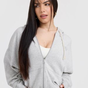 Raw Lounge Oversized Zip Hoodie Light Grey Marl