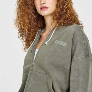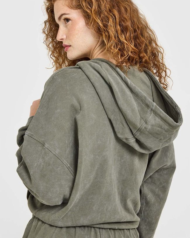 Raw Lounge Oversized Zip Hoodie Washed Alpine Green