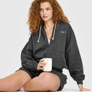 Raw Lounge Oversized Zip Hoodie Washed Black