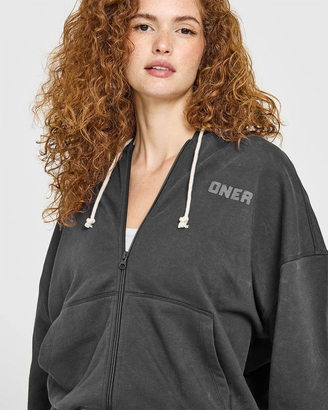 Raw Lounge Oversized Zip Hoodie Washed Black