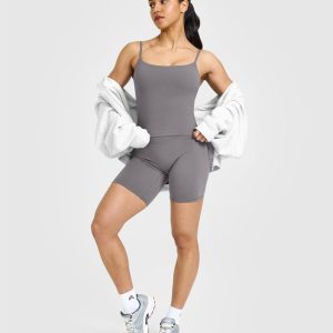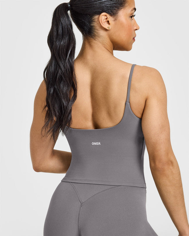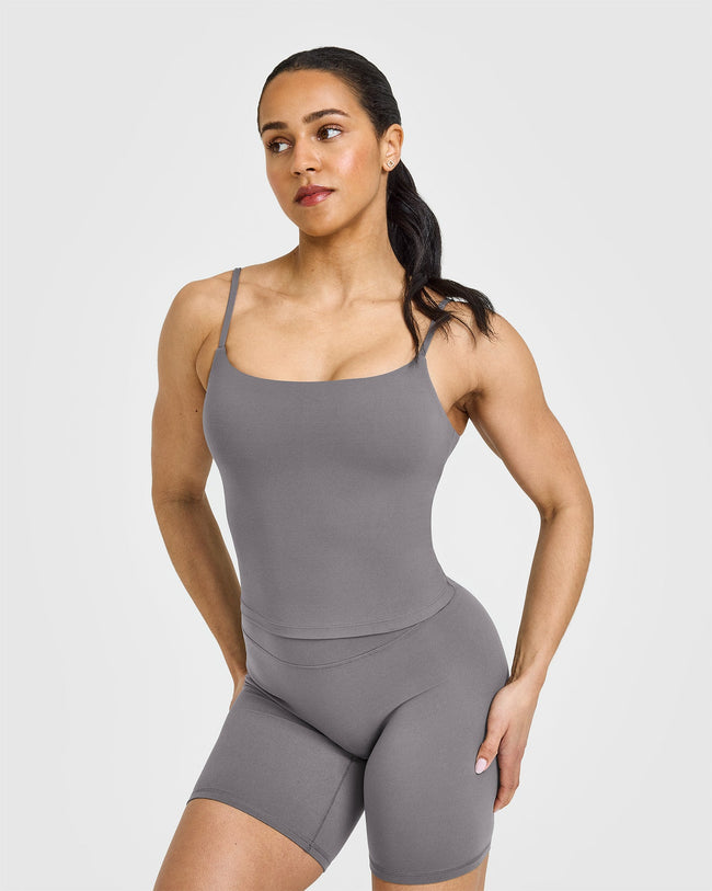 SoftMotion™ Strappy Mid Vest with Built in Bra Shelf Ash Grey