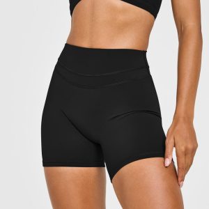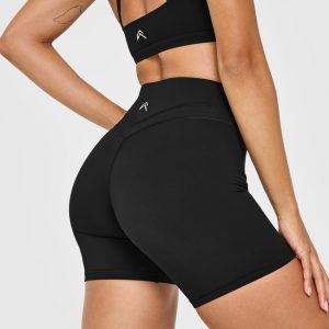 Unified High Waisted Shorts White Logo 6″ Black