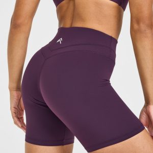 Unified High Waisted Shorts White Logo 6″ Blackberry Purple