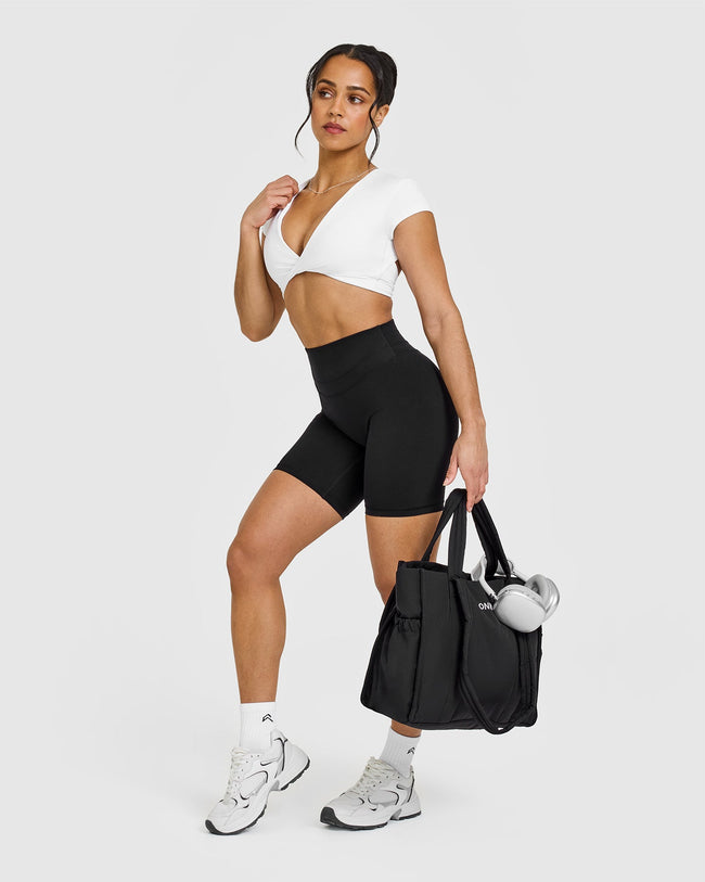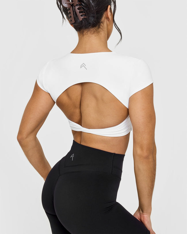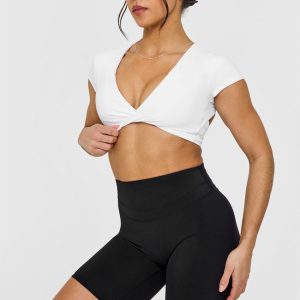 Unified Twist Front Short Sleeve Crop Top White